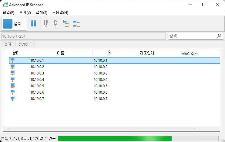 외부 LCM 디스플레이가 없는 스위치나 AP의 경우에는 UniFi-Discover 툴이나 Advanced IP Scanner (https://www.advanced-ip-scanner.com/)를 사용하여 IP 주소를 찾아야 합니다.