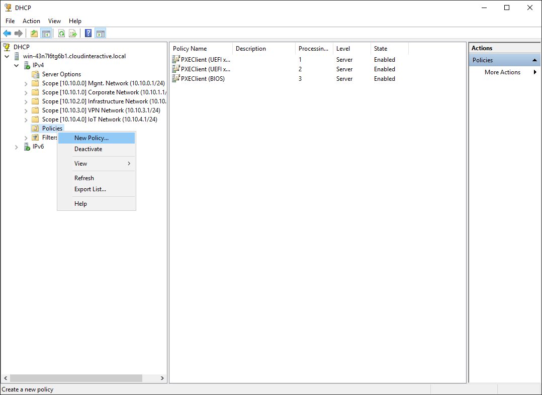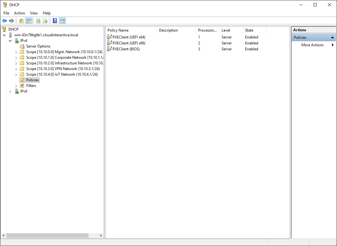 이렇게 총 3개의 정책이 추가되었습니다. 이제 DHCP 정책에 의해 클라이언트가 EFI, BIOS 인지에 따라 다른 부트 파일 경로를 전송하게 됩니다.