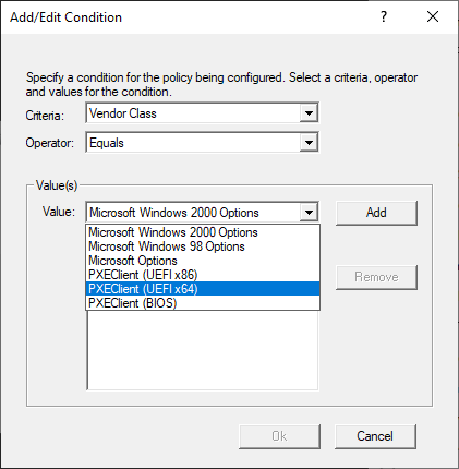 | PXEClient (UEFI x64) | PXEClient (UEFI x64) | PXEClient | boot\x64\wdsmgfw.efi |