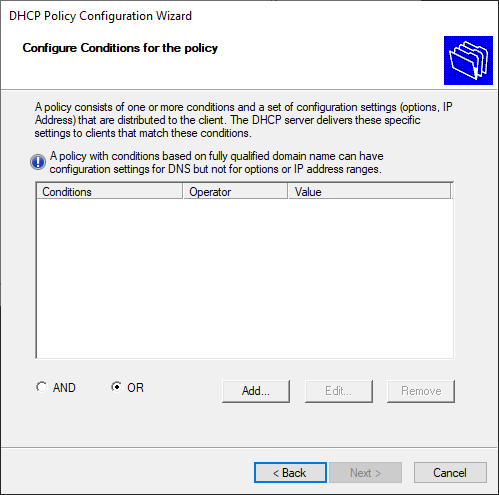 | Policy Name | Conditions | Option 60 | Option 67 |