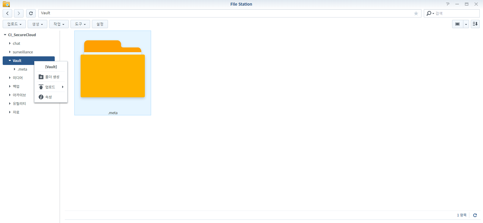 먼저 파일 스테이션에서 원하는 공유 폴더를 우클릭 한 후 속성을 클릭합니다.
