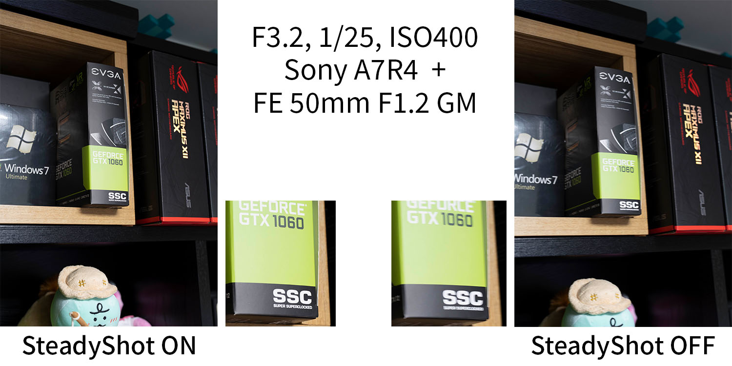 손떨림 보정 기능은 광량이 부족한 환경에서 셔터 속도를 안전 셔터 속도보다 1 ~ 2단계 정도 내려도 사진을 크게 흔들리지 않도록 해줍니다. 하지만 이는 사진에서 완벽하게 핸드 블러를 제거하여 깔끔하게 만들어주진 못합니다. 그래서 손떨림 보정 기능을 켜도 안전 셔터 속도 미만으로 셔터 속도를 내리고 손으로 사진을 찍으면 미세하게나마 사진이 흔들리게 됩니다.