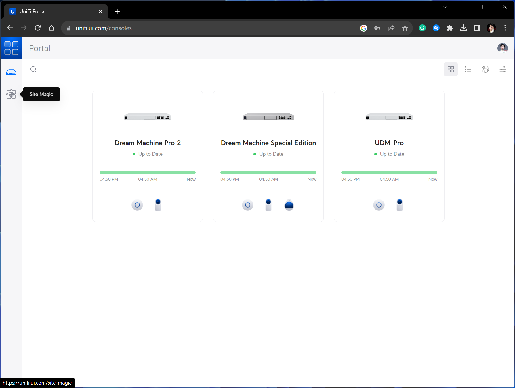 UniFi Portal에 접속하여 좌측 사이드바의 Site Magic 아이콘을 클릭합니다.