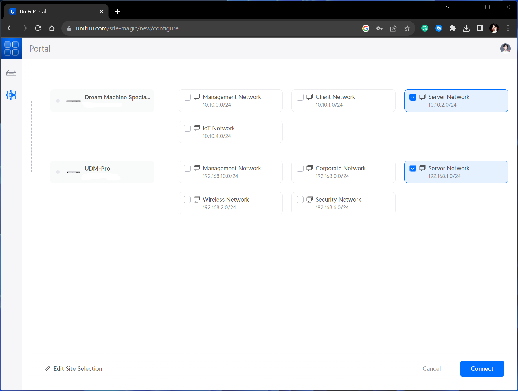 - 다음 UniFi Gateway Console만 Site Magic에 참여 할 수 있습니다.