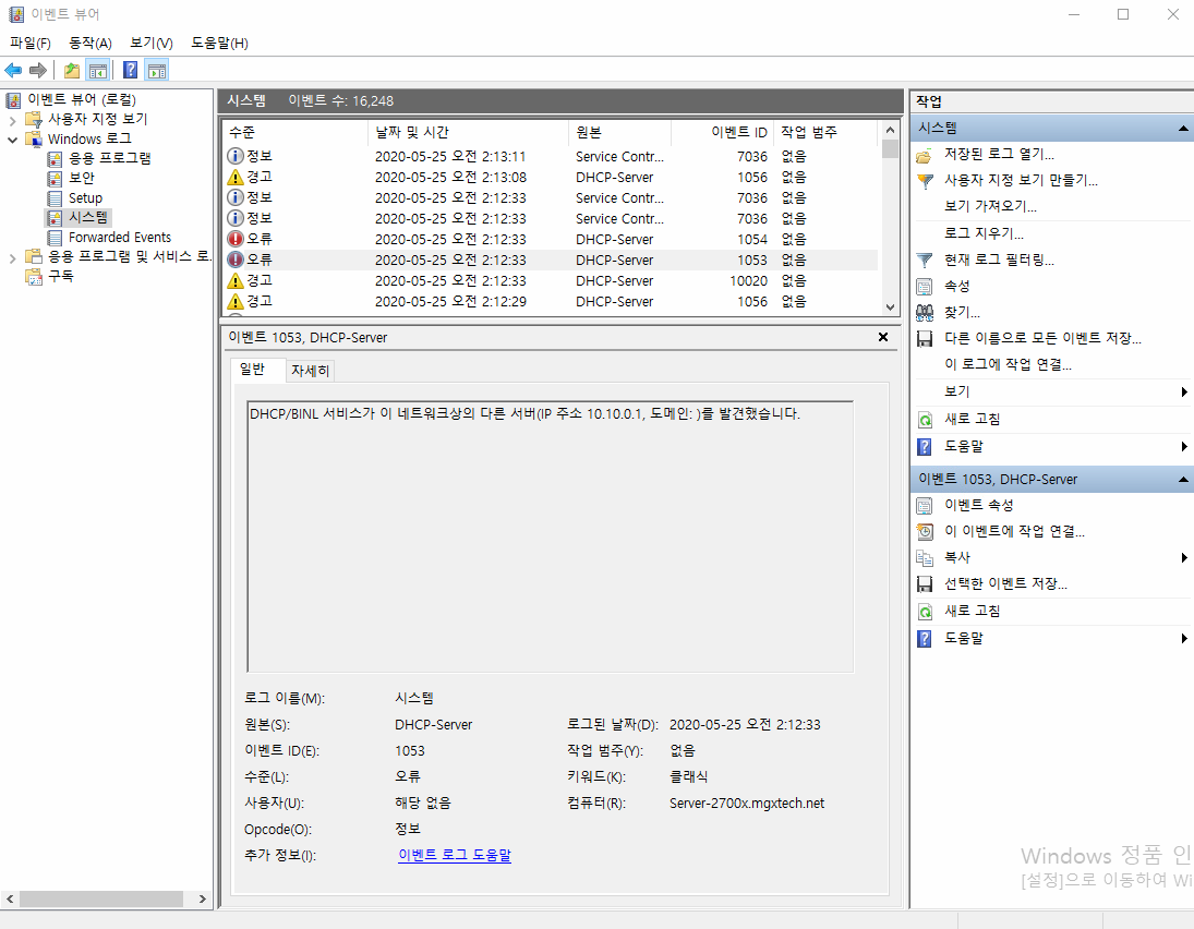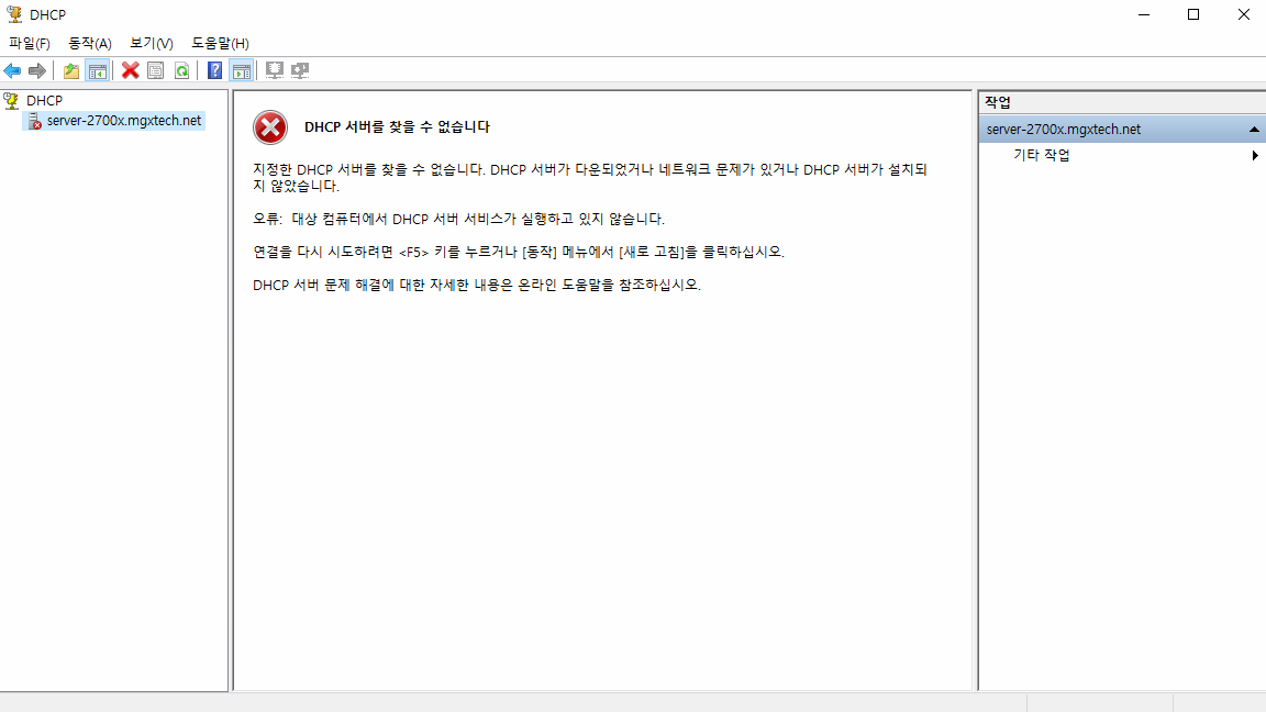 DHCP 서비스를 다시 시작하면 해당 문제가 해결됩니다.