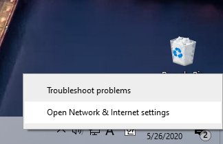 작업표시줄의 인터넷 아이콘을 눌러 Open Network & Internet settings 를 클릭합니다.