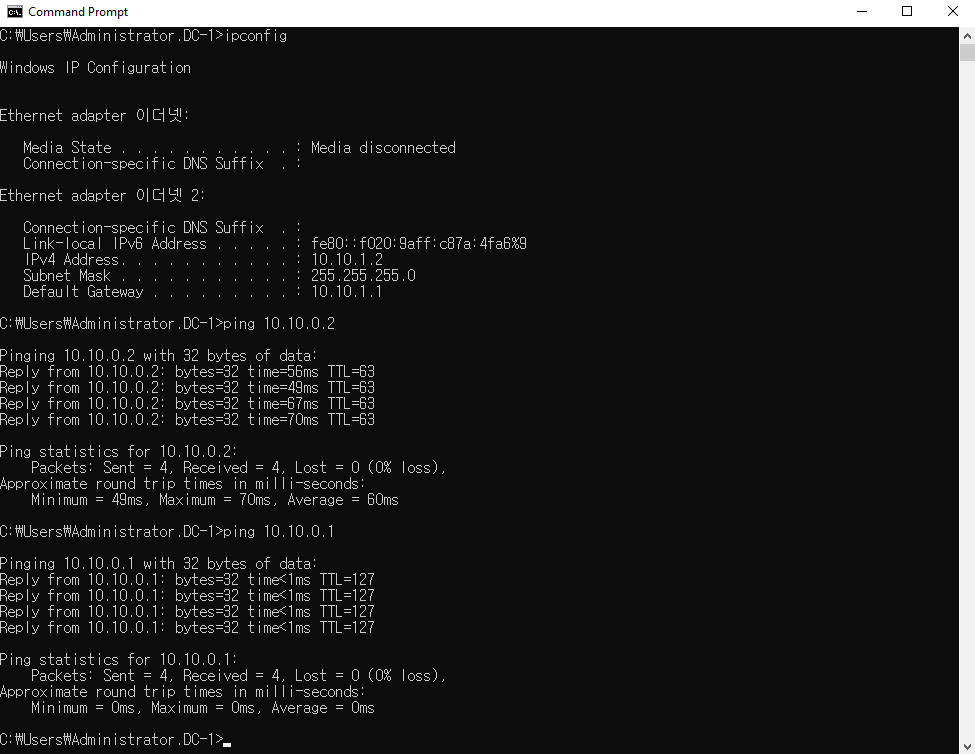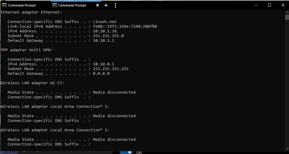 ipconfig를 쳐보면 정상적으로 PPP adapter UniFi VPN에 지정한 IP 대역이 할당되었습니다.