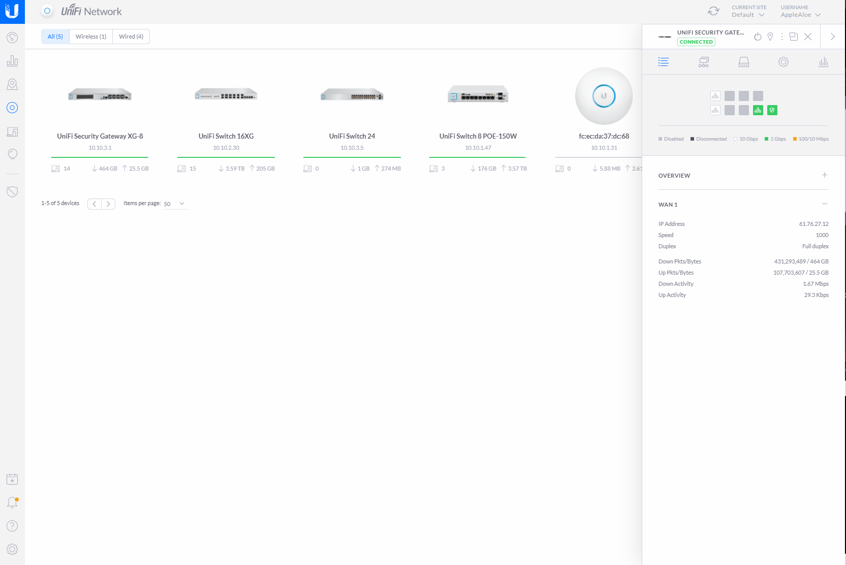 UniFi Gateway IP를 모르는 경우, UniFi Controller 설정 페이지의 Devices 항목에서 게이트웨이를 선택하면